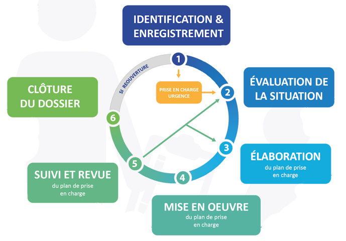 En rappel, le processus gestion des cas au Mali comporte six étapes qui sont